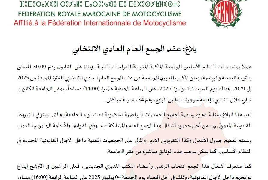 Rendez-vous les 22 & 23 février 2025 à Sidi Bettache, province de Benslimane ! Le club Mxgpimaroc, sous l’égide de la Fédération Royale Marocaine de Motocyclisme, vous invite à un week...